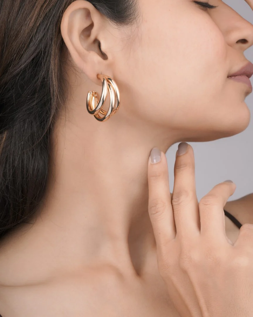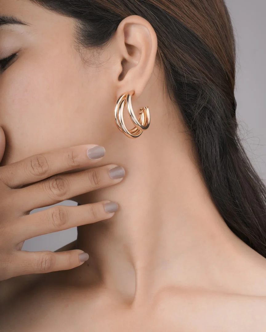 Be the first to review “Gold Triple Hoop Earrings – 3-Layer Chunky C-Shaped Studs”