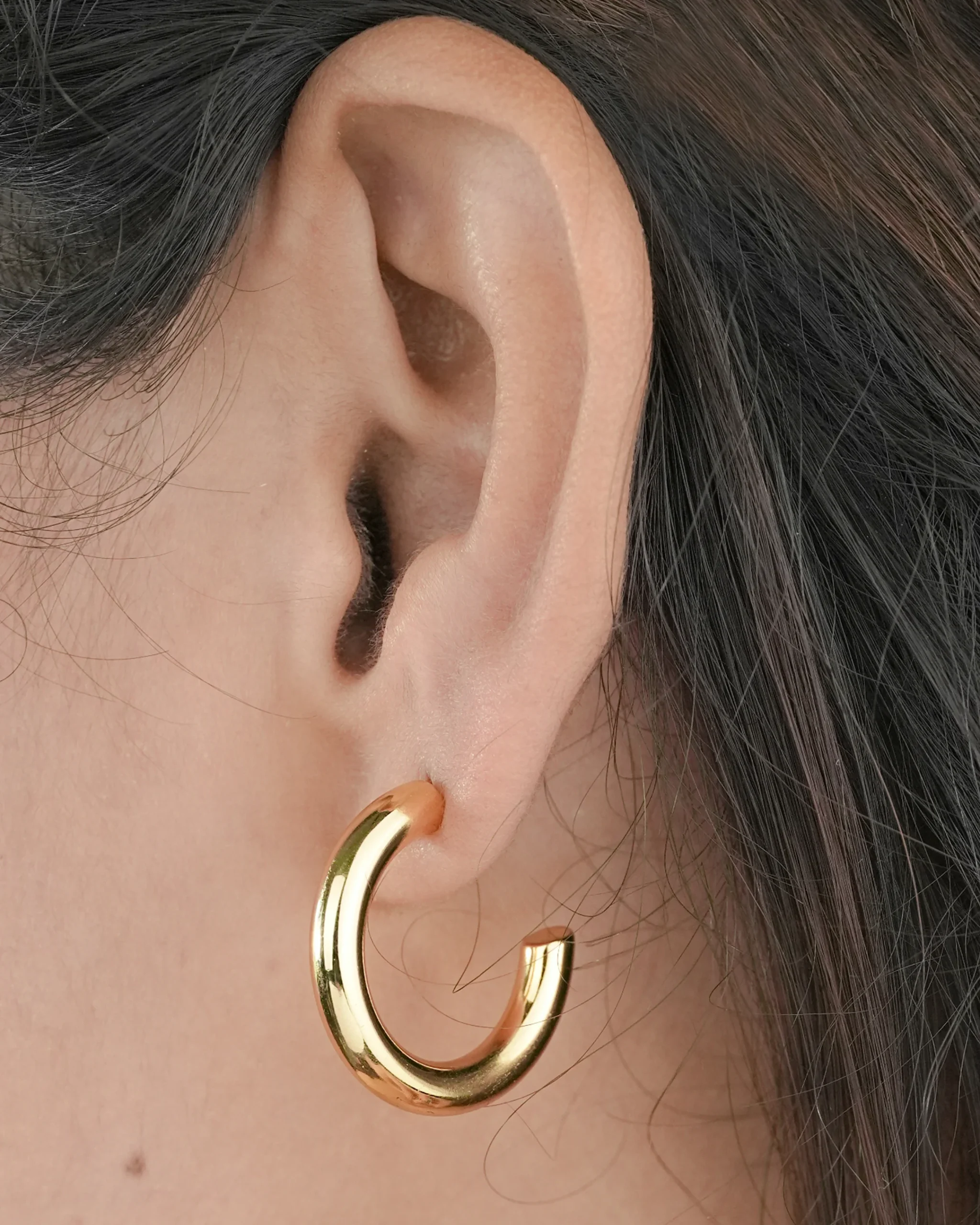 • Pair 2: Classic Golden C-Hoops. A must-have for every woman. These smooth, round hoops are the perfect size—not too big and not too small.