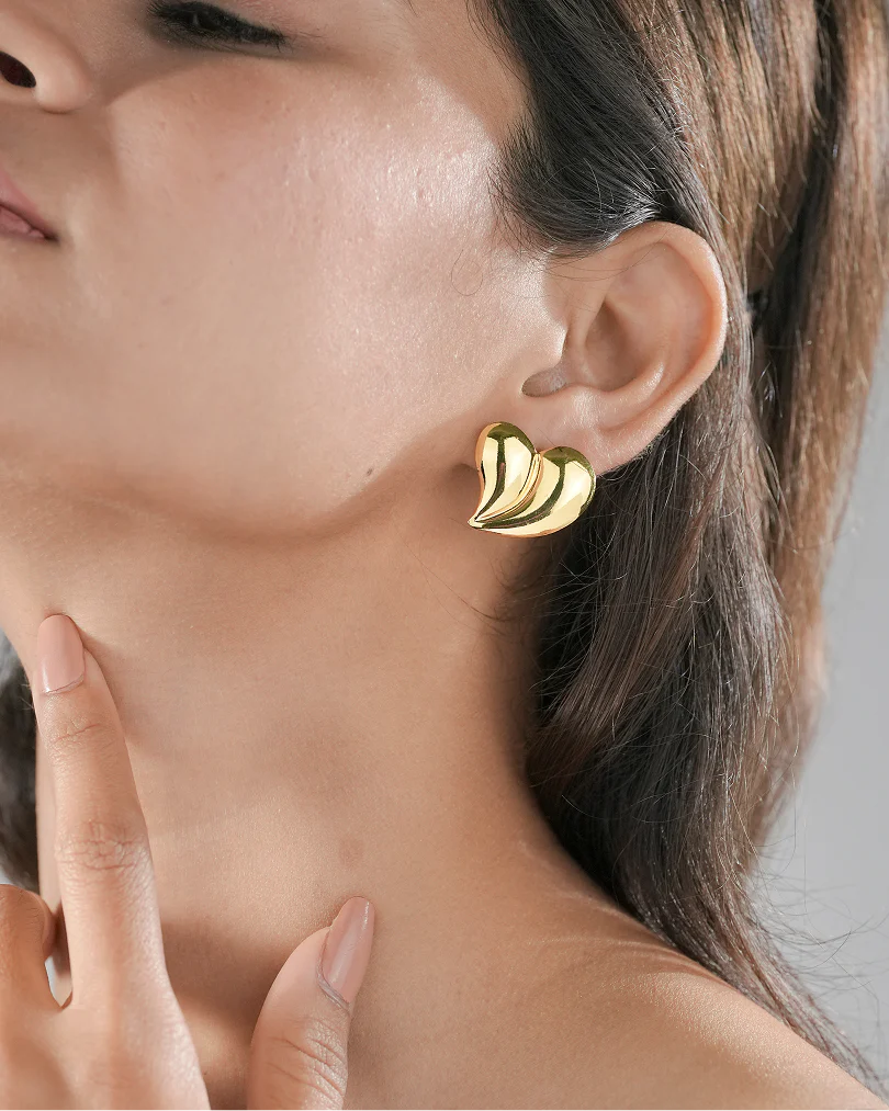 Pair 1: The Modern Wave Studs These aren’t your regular flat studs. They have a beautiful, puffed-up wave design. They look like smooth, melting gold on your ears. They are bold, shiny, and perfect for when you want people to notice your style.