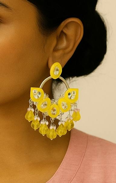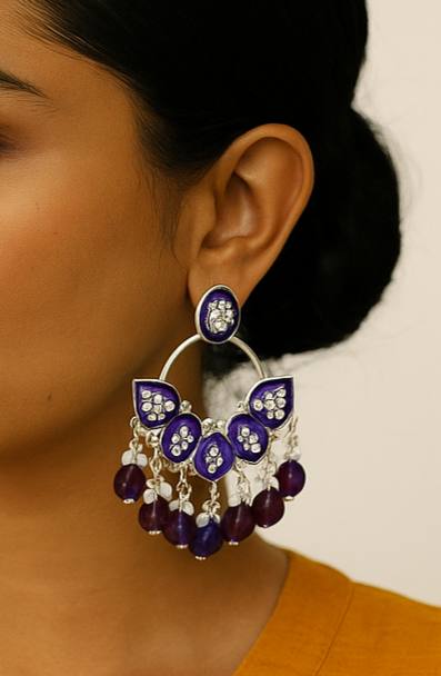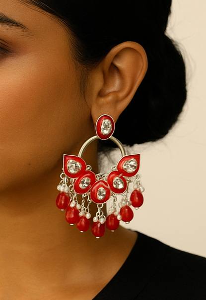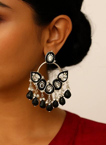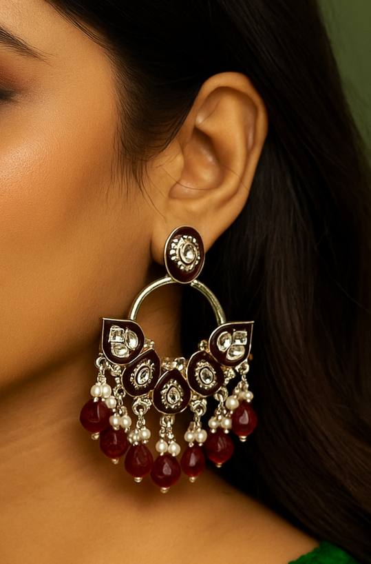 • Design: Classic Chandbali (Moon-shaped) silhouette with a modern hoop twist.